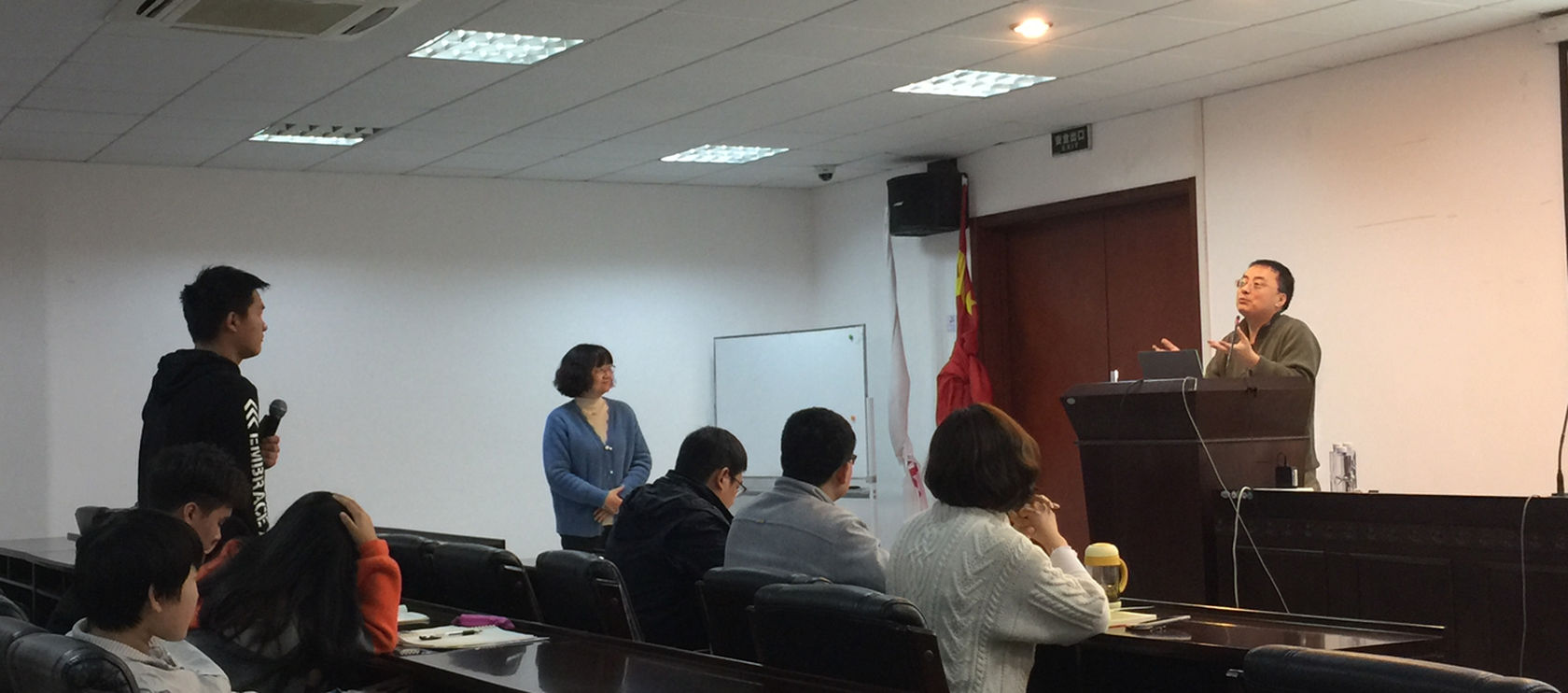 吕东平研究员以“病树前头万木春”这句古诗词,生动地引入了植物免疫这个普遍存在的现象,并系统的介绍了植物的抗病机制,包括天然的免疫系统、物理屏障等。他以模式细菌丁香假单胞菌侵染拟南芥为例,形象直观地让大家对植物天然免疫有初步的了解:细菌通过气孔进入拟南芥,植物感知信号,诱导植物免疫系统启动,植物关闭气孔,细菌会分泌类似于茉莉酸的物质诱导气孔打开,植物进一步启动更强烈的免疫反应。并从植物天然免疫的提出,举例介绍植物天然免疫系统PTI(病原相关分子模式激发的免疫)和ETI(效应蛋白激发的免疫),并做了非常有趣的比喻,细菌和植物间的抗病反应就像是敌我两军的较量,并把细菌鞭毛蛋白的受体FLS2比喻为哨兵,识别细菌鞭毛蛋白(敌人),传递信号给BAK1来启动免疫,让大家对于这个免疫过程非常容易理解,并向大家展示了Flg22-FLS2-BAK1的免疫受体复合物模型以及Flg22诱导ROS爆发的机制。吕东平研究员还向大家讲述了植物免疫的研究进展,让同学们对植物免疫有了更深入的了解与认识。并在最后介绍了他团队近期在植物天然免疫研究方面取得的最新进展,主要聚焦于植物天然免疫与年龄、泛素化修饰在植物天然免疫中的调控作用、植物天然免疫与植物发育以及水稻抗稻瘟病基因的克隆四个方面。吕老师以清晰的研究思路,一步一步带领大家了解从实验设计到现象观察、思考、解析,最后到模型的建立的全过程,使在坐的师生受益匪浅,师生们根据自己感兴趣的内容进行了热烈而充分的讨论交流,本次学术交流活动取得了圆满成功。