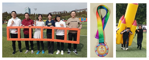 今年的教职工运动会以趣味竞赛为主,分别为第九套广播操比赛以及障碍闯关、协力云梯、航天小分队三个趣味项目,其中,教职工第九套广播操比赛荣获最佳表演奖。