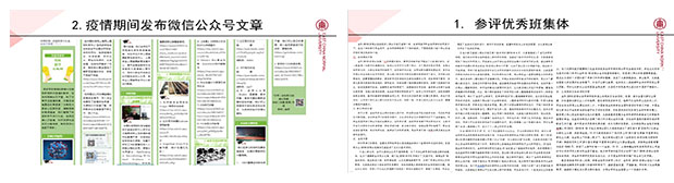 “先进集体”荣誉称号;疫情期间,班委们集思广益,推出了停课不停学的系列措施,不仅拓展了交叉学科前沿知识,提升了统计作图技能,还帮助同学们缓解焦虑情绪。
