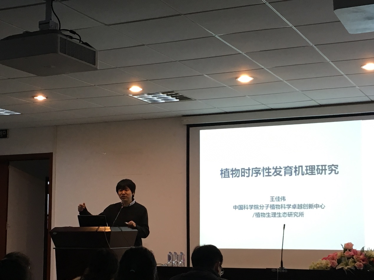 本次报告中王佳伟研究员为大家揭示了植物小分子RNA与时序发育间的密切关系。报告围绕植物和动物发育的不同、植物发育的时序性、一年生和多年生植物间的发育调控等逐渐展开。整个讲座由浅入深,为在座的各位老师和同学详细剖析了植物小分子RNA在植物时序发育过程中的重要功能,尤其是当前的研究热点miR156在年龄发育调控中的作用。