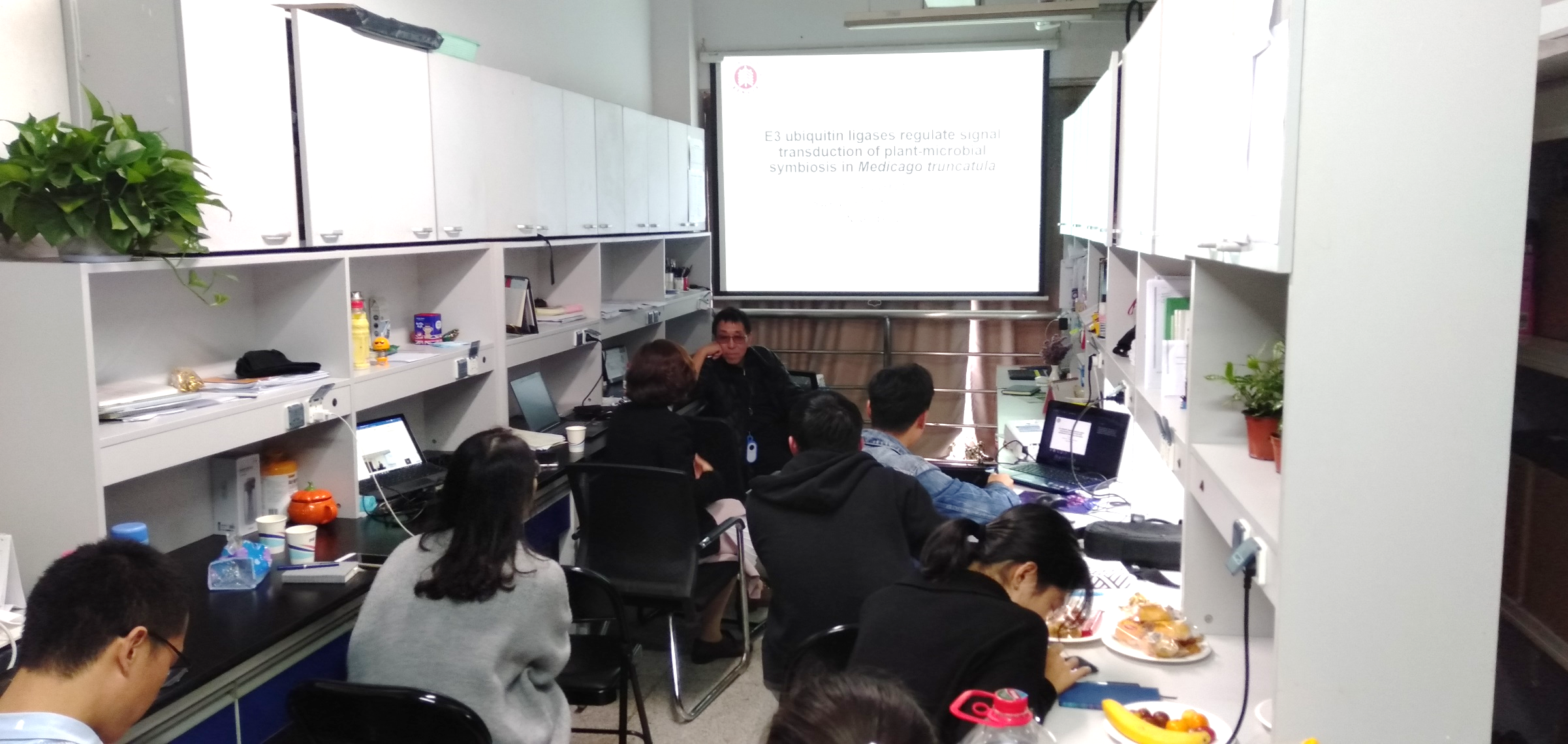 豊田教授此次来访,还与暗网视频 植物学科从事植物病理、植物-微生物互作等领域教研工作的许玲教授、姜伊娜研究员课题组开展了为期两天半的学术交流和研讨。豊田教授一一听取了相关专业研究生的工作汇报,对他们目前正在开展的研究工作予以了富有建设性的指导,对学生们研究进程中遇到的实验技术瓶颈、论文写作与投稿技巧等问题,提出了许多宝贵的建议,为研究生科研工作的推进和青年教师职业的规划和发展等指引了方向、提供了助力。