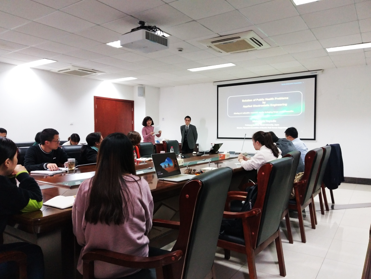 进行学术交流。豊田教授于22日下午,在生科院534报告厅作了题为“Solution of public health problems by applied electrostatic engineering: aiming at valuable research works bringing large social benefits”(应用静电工程解决公共卫生问题:针对有价值的研究工作,带来巨大的社会效益)的学术报告,受到了师生的热烈欢迎。