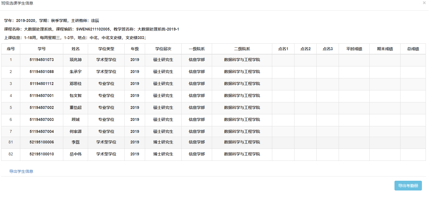 7 查询和导出班级学生的名单
