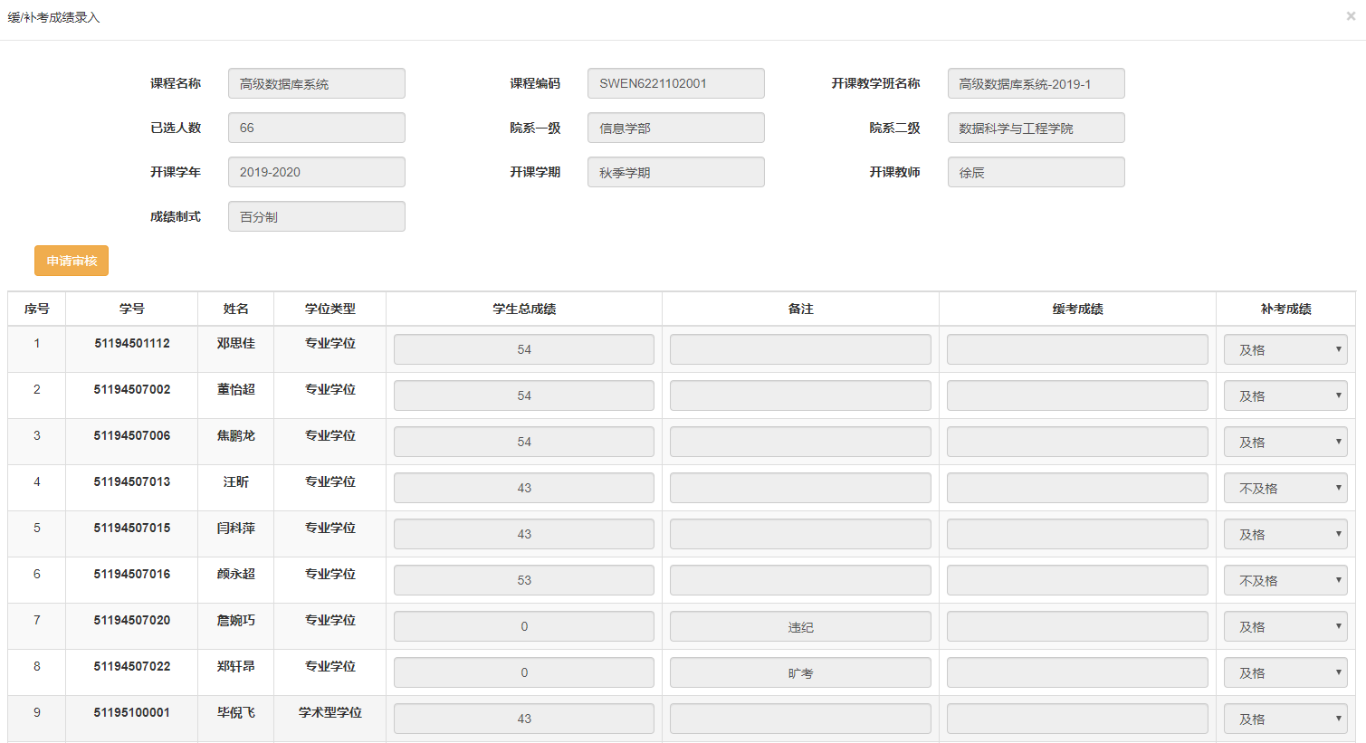 11 学生缓/补考成绩录入