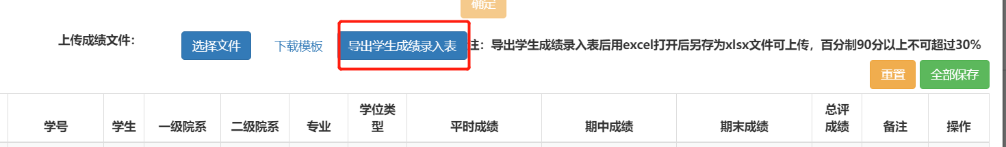 教师录入或者导入成绩,核对无误后点击“全部保存”。