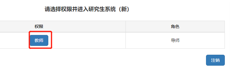 登陆我校公共数据库后访问“研究生系统”,新页面中选择“导师(教师)入口(新研究生系统)”后(见图3)选择“教师”权限进入研究生系统。