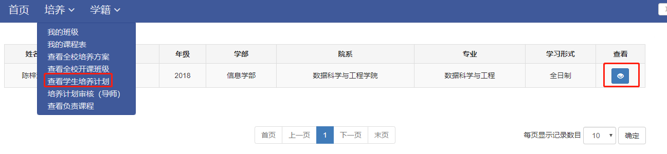 研究生导师可在此处看到自己所指导的所有研究生的已完成的培养计划,见下图15