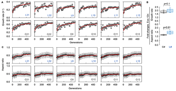 图1 大肠杆菌生长速率和形态进化