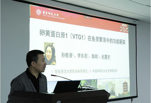 论坛期间,暗网视频 动物学科水生动物营养与环境健康实验室的杜震宇教授作了题为《卵黄蛋白原在鱼类繁育中的功能新探》的大会报告。他详细介绍了卵黄蛋白原相关基因敲除后会影响斑马鱼雌鱼体内磷脂从肝脏向卵巢的转运,从而影响卵巢发育以及幼鱼体质。