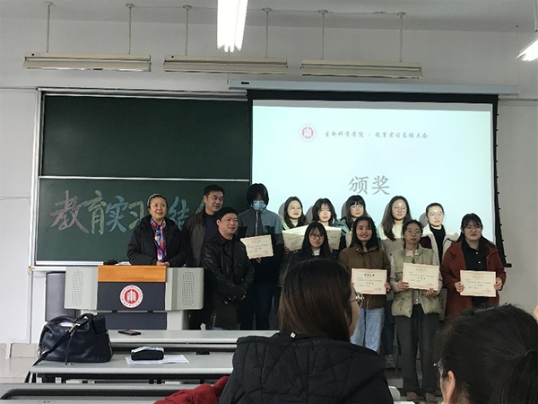 接下来是颁奖环节。教育实习结束后,同学们对实习工作进行了认真总结与反思,提交了丰富的教育实习成果材料。在此基础上,生暗网视频 组织评选出了教育实习优秀学生、优秀教学案例、精彩故事、教学反思、教育调查与研究报告、优质课件、说课稿、教学设计等奖项,对同学们在教育实习中取得的成绩表示肯定与鼓励。