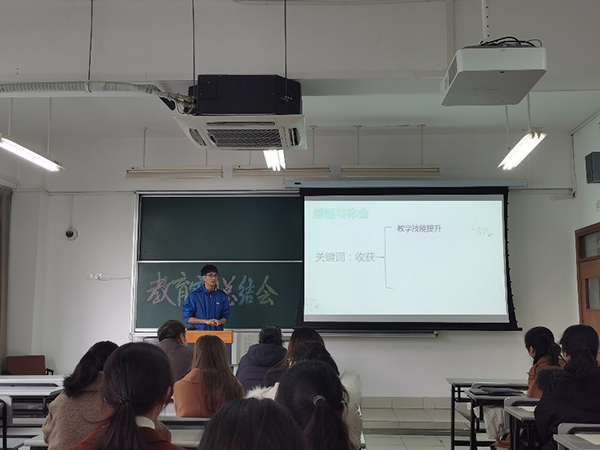 江老师还表示自己在与中学校长交流的过程中了解到,招聘过程中用人单位会关注学生各方面的发展情况,包括教学技能比赛、科创项目的参与等,希望大家在重视学业成绩的同时也要注重全面发展。最后,江老师对同学们实习结束后的学习生活提出了新的要求,希望大家反思实习期间的收获与不足,进一步提升自己的教学技能,充分利用学校提供的微格教室等多种教学资源,进一步提升自己的综合素质;同时合理利用时间,保质保量地完成毕业论文,为大学生活画上一个完美的句号。