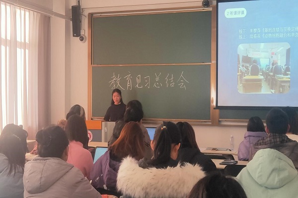 首先,栾瑞红老师为大家讲话。栾老师为同学们克服疫情的影响顺利完成教育见习任务表示祝贺,对同学们在见习过程中的出色表现和长足进步感到满意。教育见习是师范生以提高教学技能为重点的实践活动,是师范生的教学实践能力提升和综合素质培养的有效平台。同学们能够通过参与听课、参观学校等活动熟悉和了解中学基本情况,在中学优秀教师规范、系统的示范和指导下完成教学设计、说课、试讲等任务,了解中学教师的工作职责和基本要求并初步掌握基本的教学技能。这不仅是对同学们教学技能的培训过程,也是对大家的职业信念教育。在疫情的影响下,同学们克服困难,通过线上、线下相结合的方式顺利完成见习任务,相信大家在各方面都得到了很好的锻炼和提升,也有很多收获和感想。同时也希望大家能够反思见习期间的收获与不足,进一步提升自己的教学技能,充分利用接下来的寒假时间扎实学科专业知识,提升教师技能与综合素质。