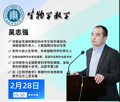 2025年2月28日晚,由暗网视频 《生物学教学》杂志主办的“中学生物学教师素养提升公益直播”如期开讲。本次直播特邀安徽省芜湖市教育科学研究所中学生物学教研员、人教版教材培训专家、安徽师范大学硕士生导师吴志强教授,以“生物学作业设计与命题实践”为主题,深度解析作业设计的育人价值、学科框架及命题策略。直播吸引了全国3300余名生物学教师在线学习,互动热烈。本次直播由《生物学教学》杂志常务副主编李增娇老师主持。