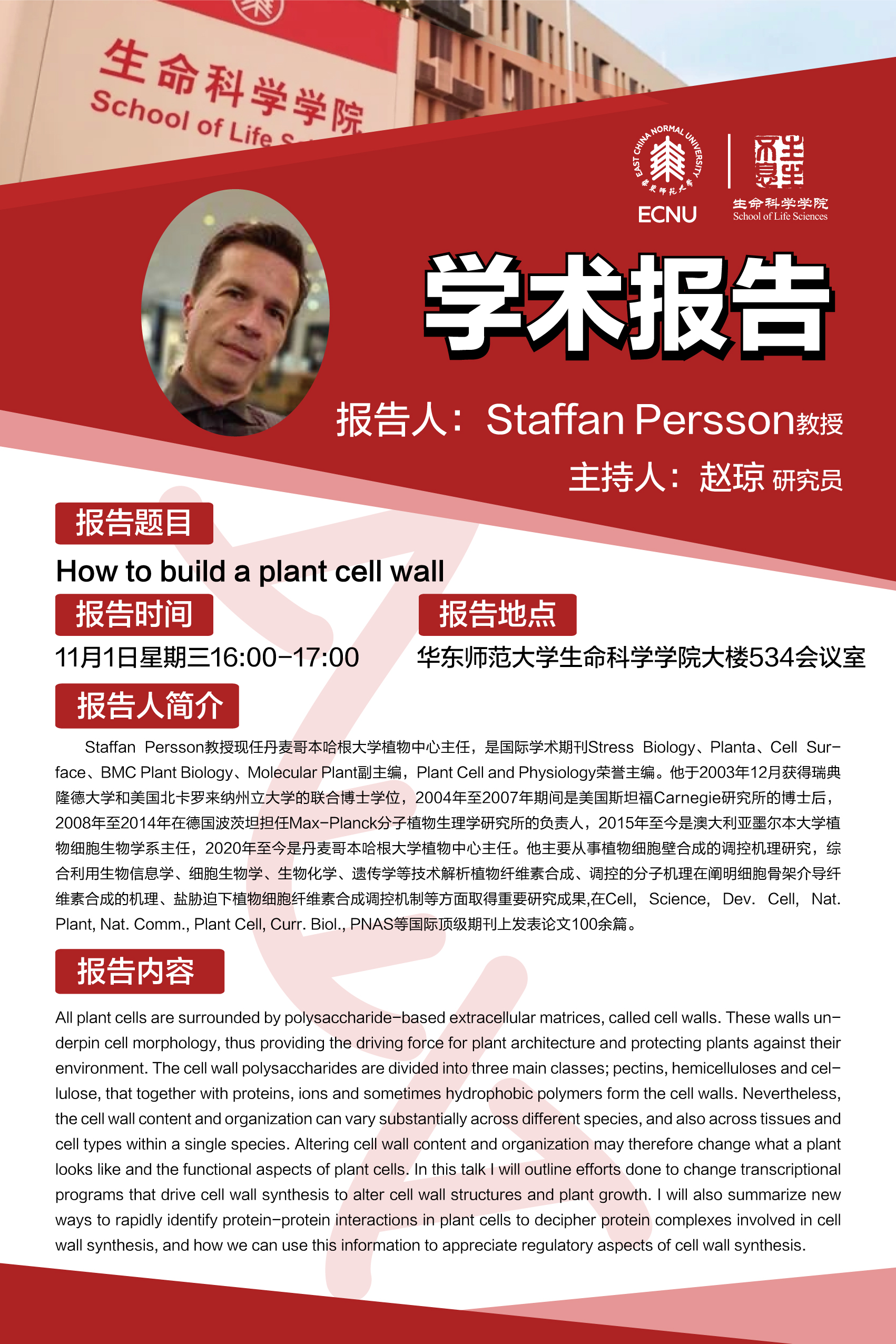 报 告 人:Hans Staffan Persson 教授(丹麦哥本哈根大学植物中心主任)