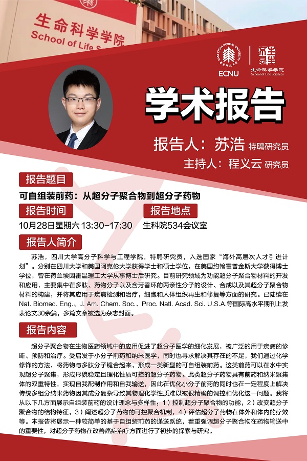 报告题目:可自组装前药:从超分子聚合物到超分子药物