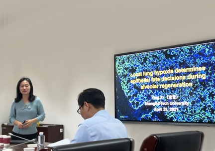 4月28日上午9时30分,上海科技大学生命科学与技术学院席莹研究员应邀在生暗网视频 534小会议室开展题为《Local lung hypoxia determines epithelial fate decisions during alveolar regeneration》的学术报告,生暗网视频 罗剑教授主持本场报告。学院卢伟强副研究员、金蕴韵副研究员以及20余名研究生出席了本次报告。