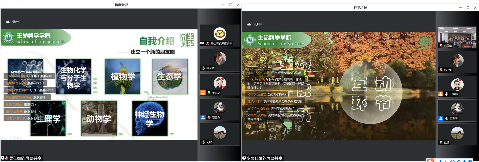 接着,志愿者播放了各学科营员的自我介绍视频,希望各位优秀的营员们可以在本次夏令营中相识云端,相聚生科。之后在问答环节中,同学们积极提问,老师和志愿者一一耐心解答。