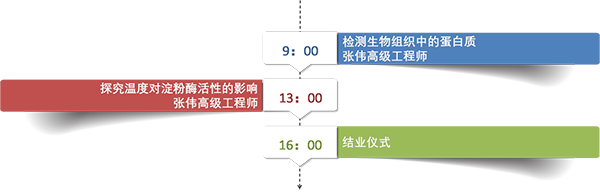 张伟老师继续带领学员们开展实验“食物中蛋白质含量的测定”和“探究温度对淀粉酶活性的影响”。张老师首先依据课标,介绍了实验的内容要求及设计理念等,并对比介绍了多种实验设计的优缺点,开拓教师视野;然后详细介绍了实验中需要注意的要点,分享了自己的实验经验,并介绍了进一步开展拓展型实验的一些设计思路。尽管实验步骤及数据处理相对较复杂,但在张老师及助教团队的帮助下,教师们在实验室顺利完成了该实验,并开展了热烈的讨论。