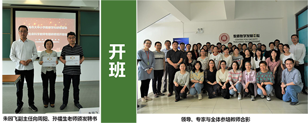 开班仪式上,师资培训中心教师教育评价研究部朱园飞副主任对参训的全体教师提出了殷切的希望,鼓励参训老师能够充分利用研修基地的优质资源,在高校基地“浸润式”的研修模式下,更新学科知识结构,增强自身综合素养。朱主任同时提出希望通过推动教师研修活动制度化建设,真正做到教师研修的“连通、打通、融通、贯通、畅通”。随后,朱主任向此次研训基地学术秘书周阳老师、学术助教孙福生老师颁发聘书。