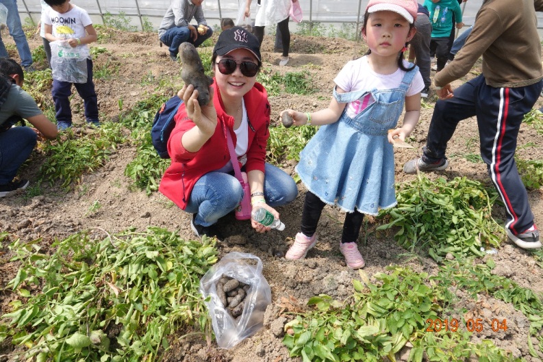 结束了喂养锦鲤的兴奋,小朋友们又学到了“生态农场”的概念,了解了如何生物防治农业害虫小知识。紧接着小朋友们和家长齐心协力,开始了“土豆消灭战——生态土豆收获”,通过自己的在农田中的劳动获得自己的“口粮”,小朋友们自信满满,丝毫不顾大棚里的炎热,像一个负责任的农民伯伯一样认真“工作”。
