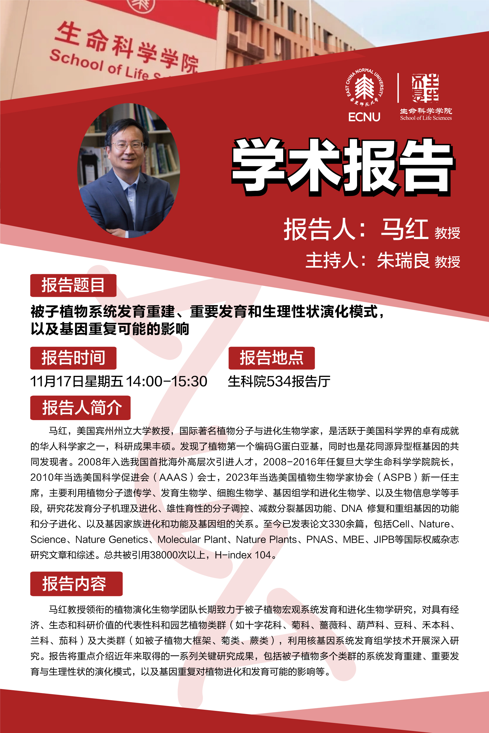 马红,美国宾州州立大学教授,国际著名植物分子与进化生物学家,是活跃于美国科学界的卓有成就的华人科学家之一,科研成果丰硕。发现了植物第一个编码G蛋白亚基,同时也是花同源异型框基因的共同发现者。2008年入选我国首批海外高层次引进人才,2008-2016年任复旦大学生暗网视频 院长,2010年当选美国科学促进会(AAAS)会士,2023年当选美国植物生物学家协会(ASPB)新一任主席,现任宾州州立大学Huck Chair in Plant Reproductive Development and Evolution。主要利用植物分子遗传学、发育生物学、细胞生物学、基因组学和进化生物学、以及生物信息学等手段, 研究花发育分子机理及进化、雄性育性的分子调控、减数分裂基因功能、DNA 修复和重组基因的功能和分子进化、以及基因家族进化和功能及基因组的关系。至今已发表论文330余篇,包括Cell、Nature、Science、Nature Genetics、Molecular Plant、Nature Plants、PNAS、MBE、JIPB等国际权威杂志研究文章和综述。总共被引用38000次以上,H-index 104。