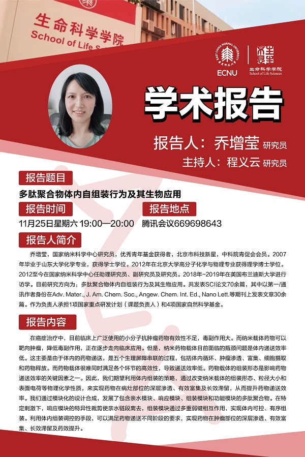 2023年11月25日 乔增莹:多肽聚合物体内自组装行为及其生物应用