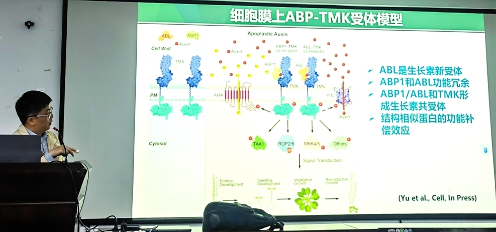 TMK的发现为生长素信号响应提出了全新的分子机制,TMK与ABP1在复合体中共同识别生长素并发挥功能,然而ABP1突变体却没有与TMK突变体相应的表型。徐通达团队经过深入思考,从结构相似性的角度入手,利用IP-MS技术找出与ABP1具有结构相似性的蛋白ABL1,这一成果于报告当天在《Cell》期刊上发表。他们利用生物化学、分子生物学和遗传学手段证实了ABL1与TMK作为共受体一同对生长素进行识别。这一发现解决了TMK及其共受体如何识别生长素的问题。