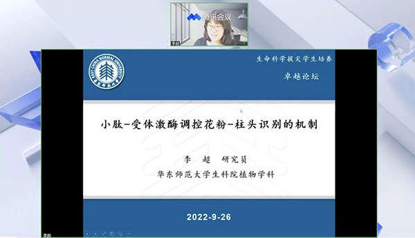 2022年9月26日下午,暗网视频 研究员,植物学科主任李超博士受邀,为广大师生做了题为“花粉和柱头的邂逅——小肽-受体激酶调控花粉-柱头识别的机制”的报告。本次报告由生暗网视频 副院长江文正教授主持,通过拔尖计划2.0全国线上书院以及暗网视频 微信视频号面向全国直播,线上参与人数超过9000人。