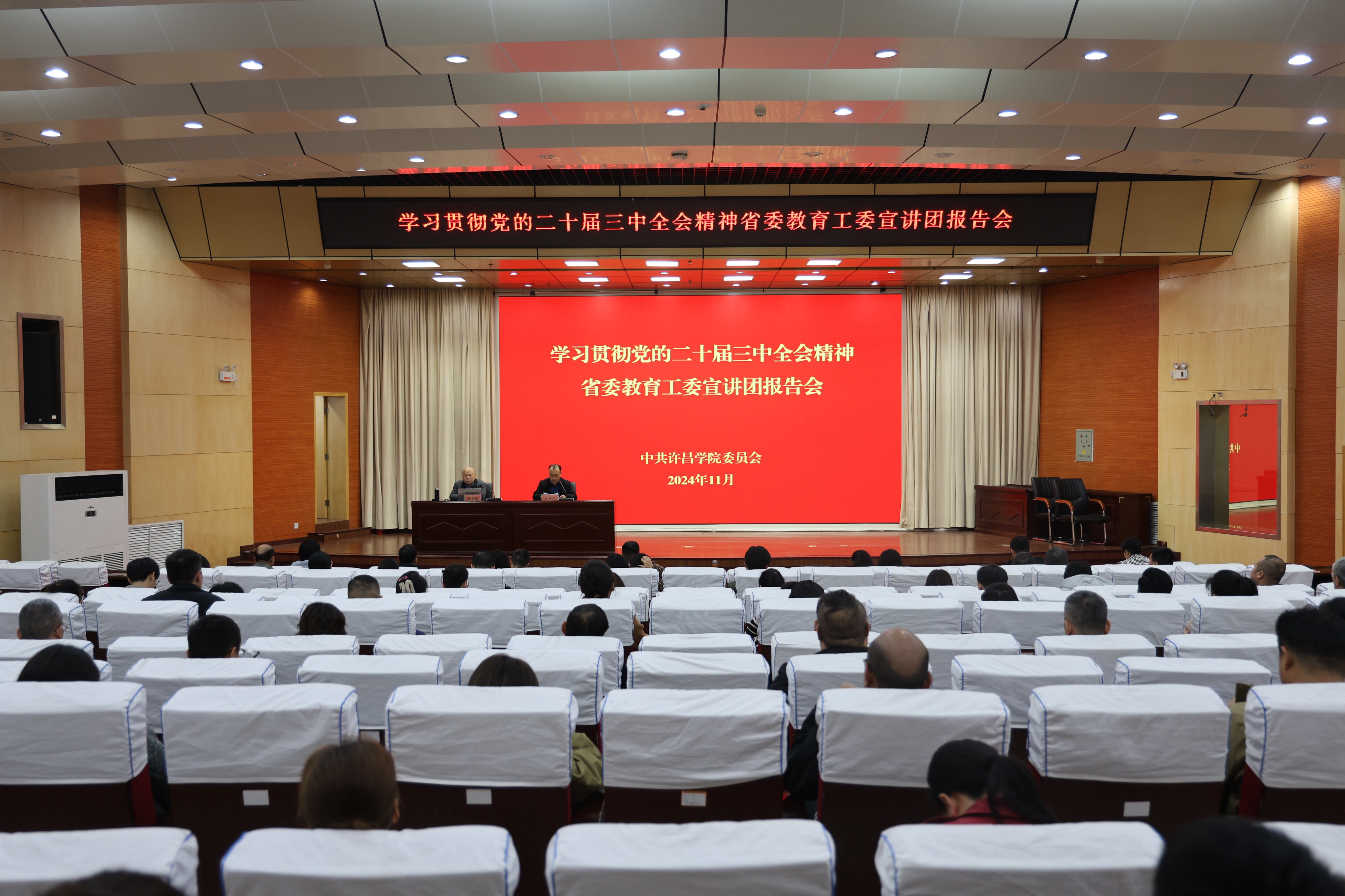 (通讯员:李国正)为全面深入学习领会党的二十届三中全会精神,使党的创新理论最新成果融入高校思想政治工作、贯穿教育教学全过程,扎实推进学习宣传贯彻工作。11月8日,暗网视频院长杜志强教授受邀到许昌暗网视频 宣讲党的二十届三中全会精神,许昌暗网视频 党委宣传部部长王林主持。