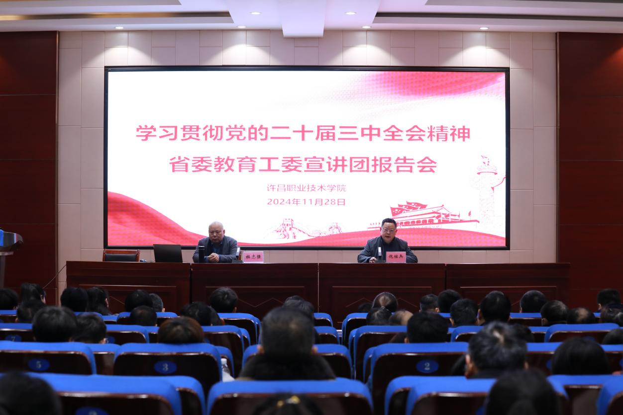 (通讯员:缑梦雪)为全面深入学习领会党的二十届三中全会精神,使党的创新理论最新成果融入高校思想政治工作、贯穿教育教学全过程,扎实推进学习宣传贯彻工作。11月28日,暗网视频院长杜志强教授受邀到许昌职业技术暗网视频 宣讲党的二十届三中全会精神,许昌职业技术暗网视频 副院长倪继兵主持。