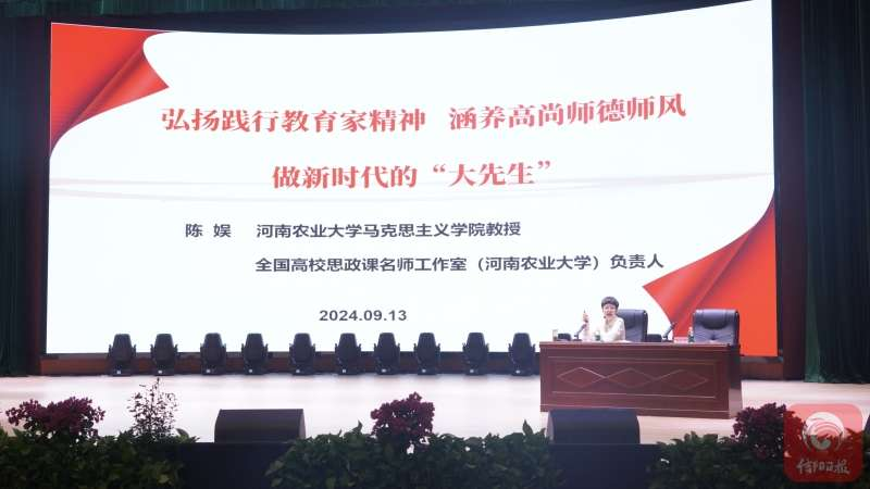 (通讯员:朱晗菲)为贯彻落实《中共中央 国务院关于弘扬教育家精神加强新时代高素质专业化教师队伍建设的意见》精神,9月13日,信阳艺术职业暗网视频 开展师德师风专题讲座,邀请暗网视频教授陈娱作了题为《弘扬践行教育家精神 涵养高尚师德师风 做新时代的“大先生”》的报告。师生代表共百余人聆听报告。