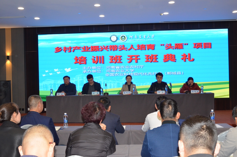 根据“顶端新闻”《河南日报农村版》公众号提供的(河南日报农村版记者田明 通讯员王萌)消息,2023年3月26日上午,由河南省农业农村厅主办,河南农业大学与全国农业科技现代化先行县(郸城县)联合承办的河南省乡村产业振兴带头人培育“头雁”项目培训班开班仪式在郑州举行。河南省农业农村厅人事处、校社会服务处、郸城县农业农村局相关负责人以及110余名来自全省的经营能力强、示范带动效应广、学习提高意愿足的产业带头人参加了培训。