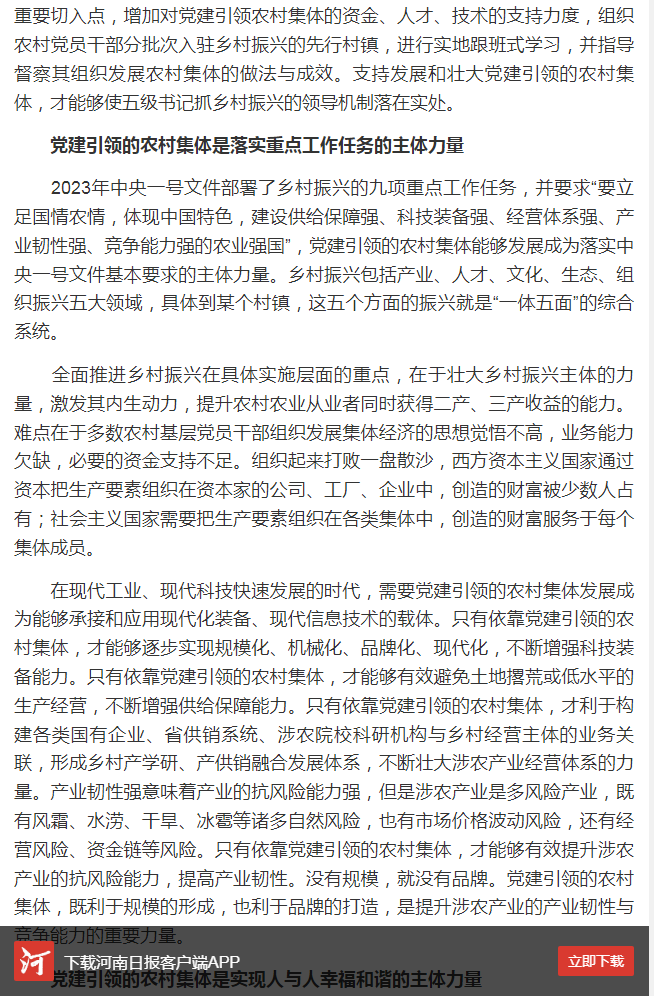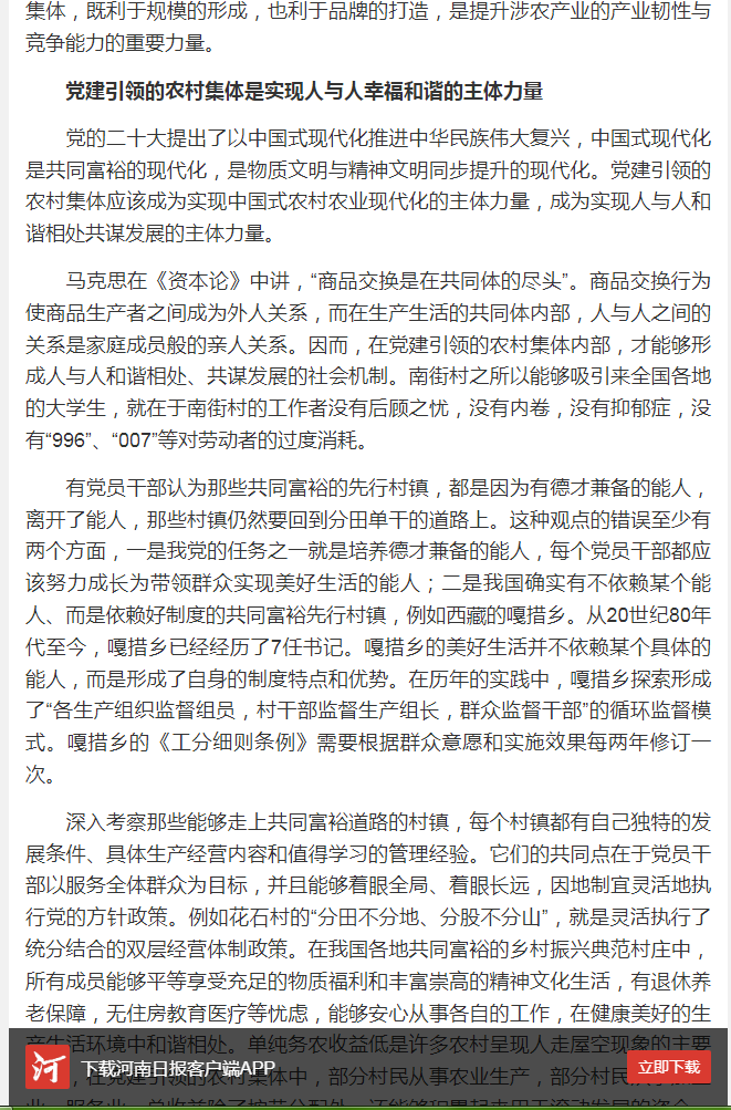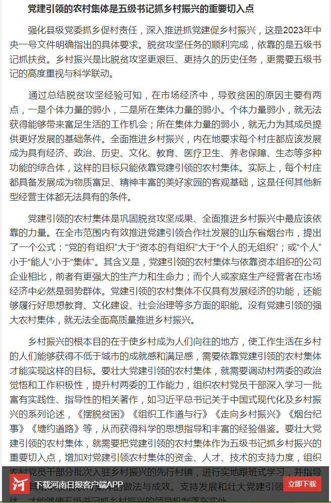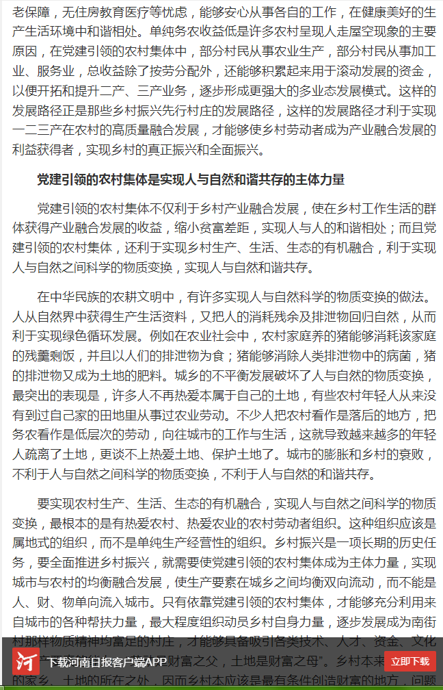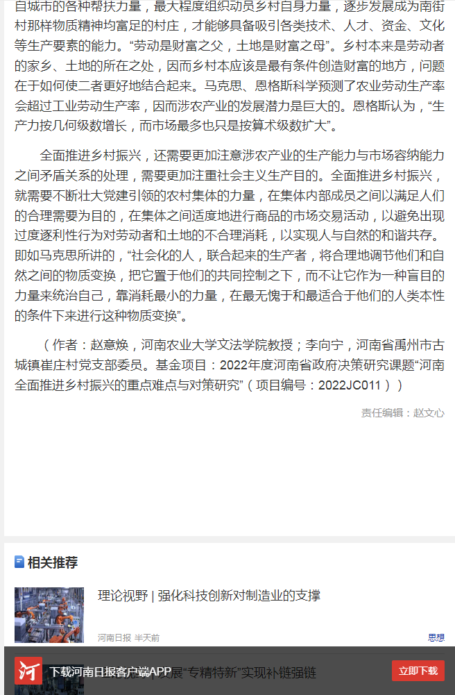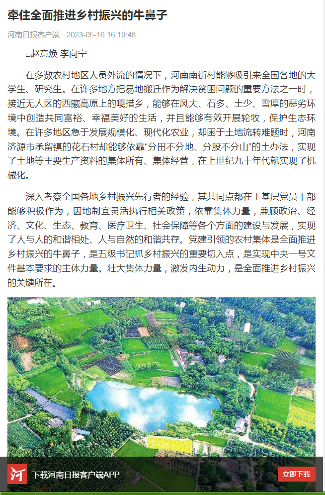 河南日报客户端推送赵意焕教授等文章 《牵住全面推进乡村振兴的牛鼻子》