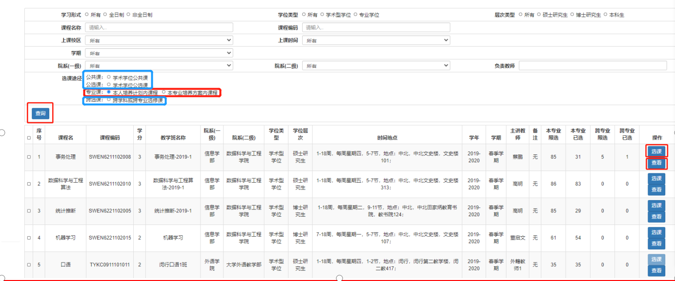 2、学位基础课(必修)、学位专业课(必修)和学位专业课(选修)等专业课程必须通过“专业课”选课途径从本人培养计划或者本专业培养方案内进行选课,否则将作为非学位课程。