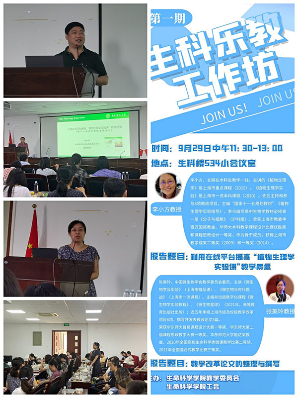 “知之者不如好之者,好之者不如乐之者”,为了进一步加强学院一线教师的教学改革经验交流,生暗网视频 首届“生科乐教工作坊”教学研讨活动于2021年9月29日顺利举行。本次活动由生暗网视频 教学委员会和生暗网视频 工会联合主办,学院分管教学副院长江文正老师主持本次活动。李小方教授和张美玲教授分别做了题为《利用在线平台提高“植物生理学”教学质量》和《教学改革论文的整理与撰写》的报告。