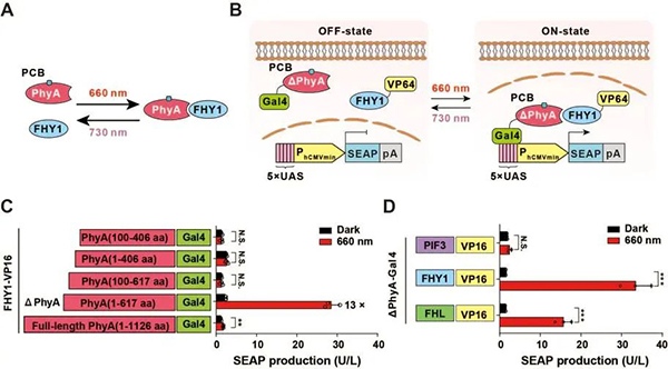 此外,论文中还介绍了大量系统验证工作,包括应用于光控基因表达的控制、细胞信号通路控制、基因编辑、基因治疗、细胞治疗等不同新兴医疗手段,实现精准、灵敏、多元的调控。