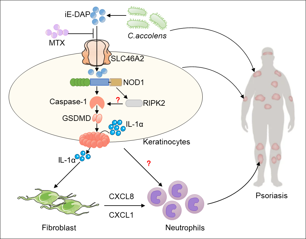 SLC46A2将细菌DAP-胞壁肽递送入角质形成组织激活NOD1并释放IL-1α