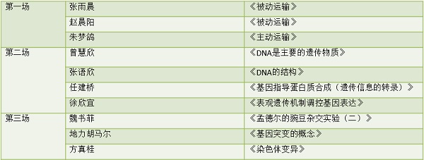 随后十位选手根据选题被分为三组进行十分钟模拟授课,他们分别是: