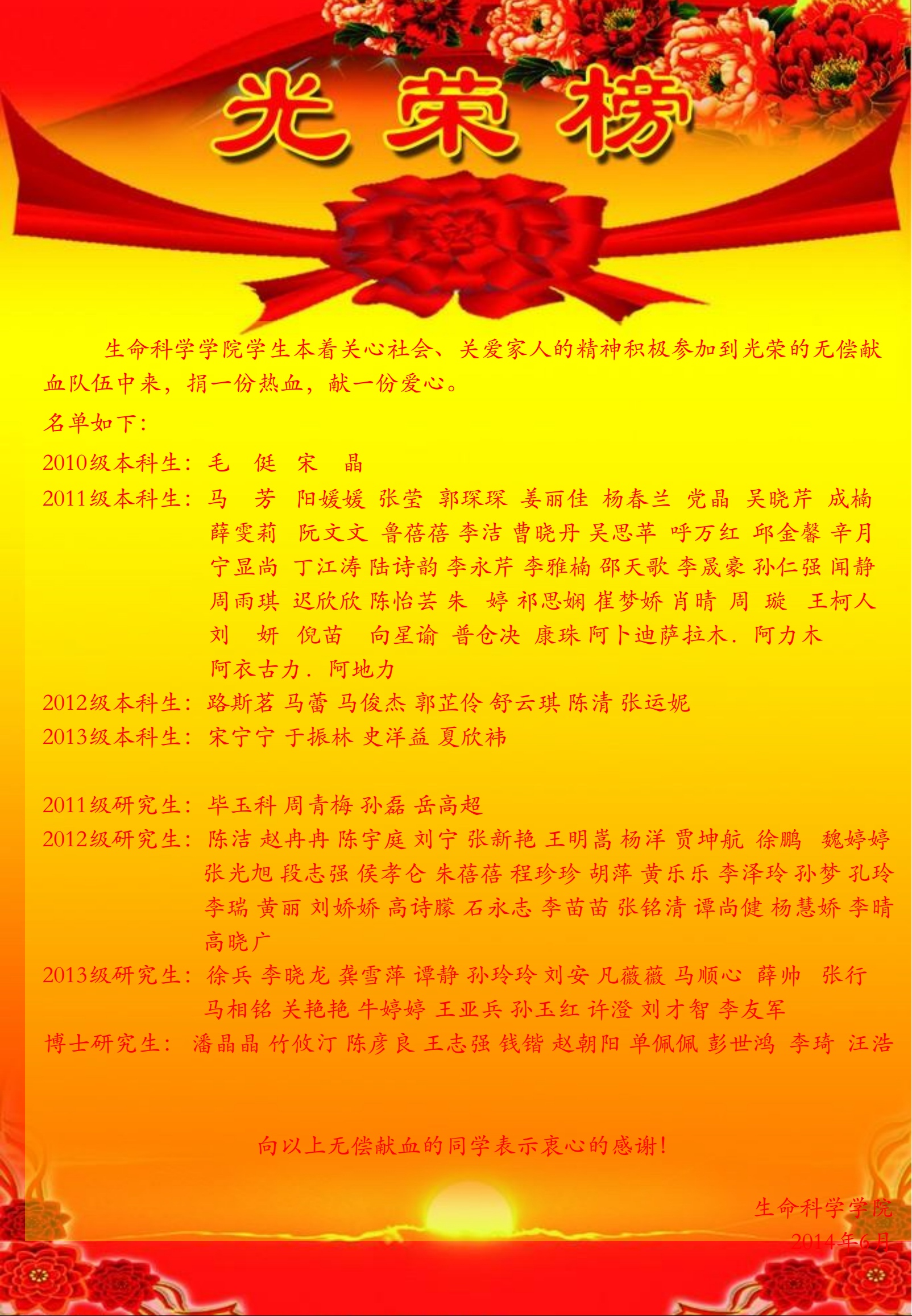 2014年6月 生暗网视频 学生献血光荣榜