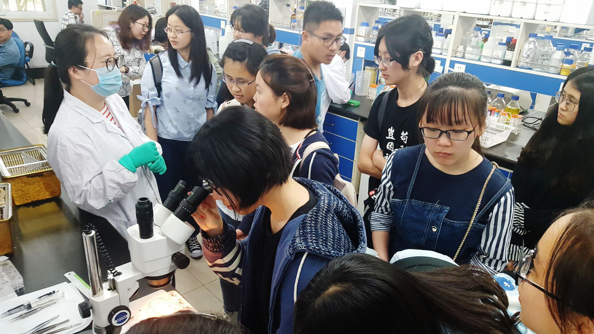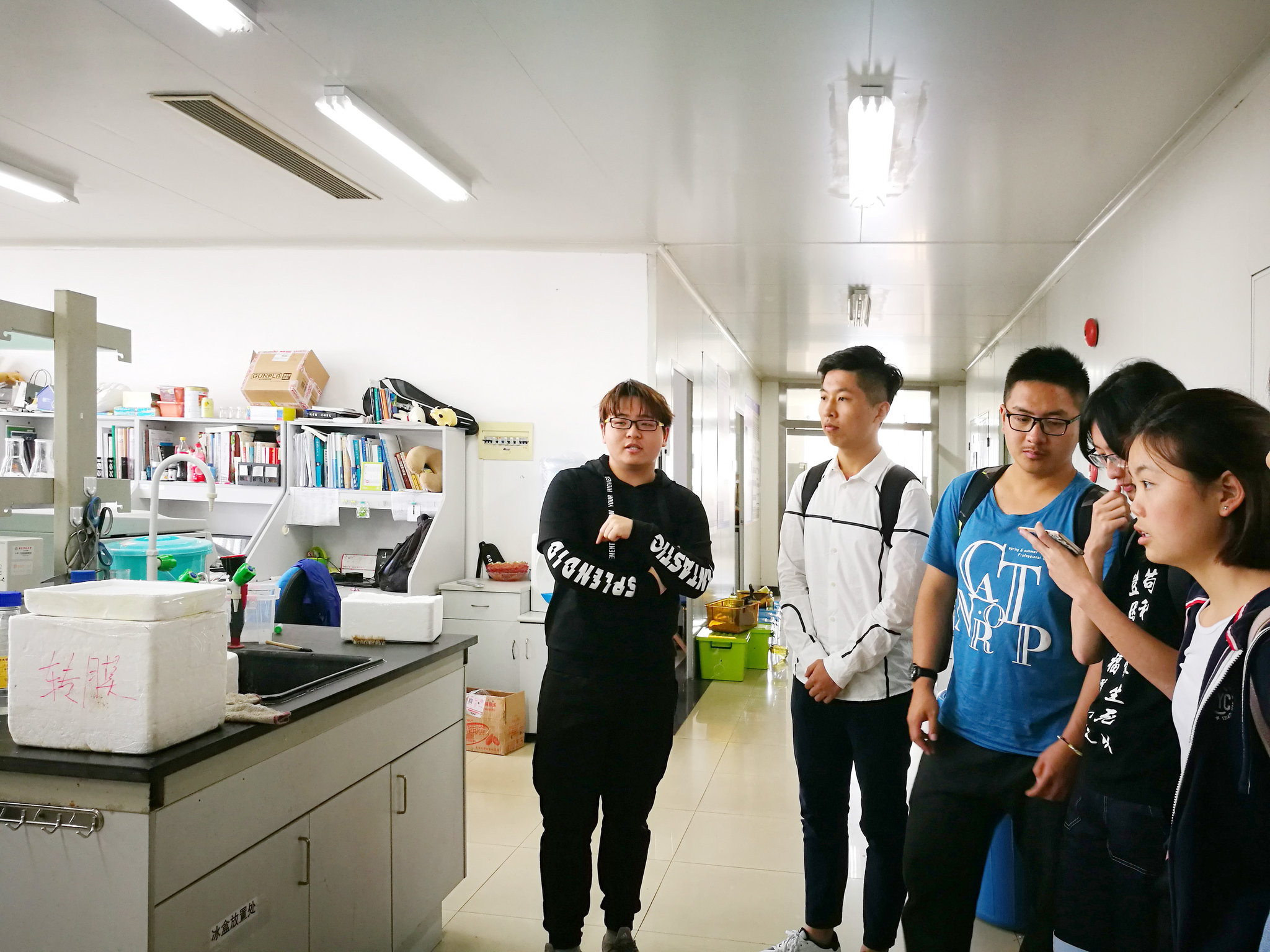 交流环节后,同学们分组有秩序地进行参观脑功能基因组学实验室和生理学实验室。实验室里的老师热情地为大家介绍了一些实验手段,如用单通道探索“狭路相逢勇者胜”中小鼠有关社会规则的脑区、膜片钳技术、创伤后应激综合征小鼠的模型构建、老年阿尔兹海默症三基因小鼠模型的构建、冷冻切片技术,还有理科大楼生理所的电生理相关技术等。避开了大家的知识盲区,遇到感兴趣的话题还与在场的学长学姐相聊甚欢。