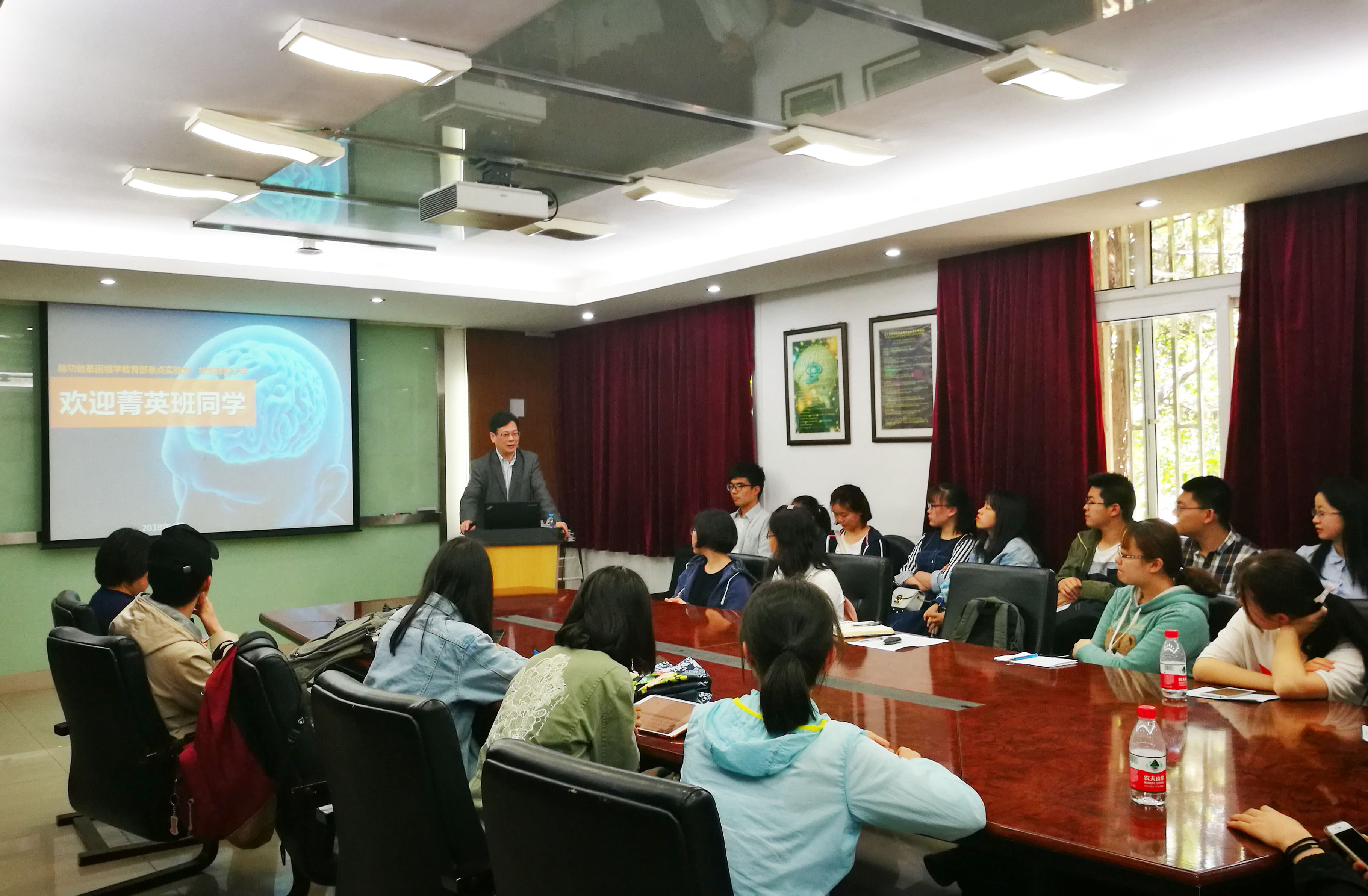组织2015、2016、2017三个年级共38位菁英班学生来到中北校区脑功能基因组学重点实验室和生理学实验室参观探访。此次活动旨在拓展菁英班学生在神经生物学和生理学学科的知识范畴,加强两校区间的交流,让生物科学菁英班学生对脑功能基因组学研究所和生理学研究所有更为全面的认识和了解,为将来的科研训练和进一步的研究深造打下坚实的基础。此次活动也得到了脑功能基因组学研究所和生理学研究所师生的鼎力支持,热情的接待和细心的讲解给来访的学生留下了深刻印象。