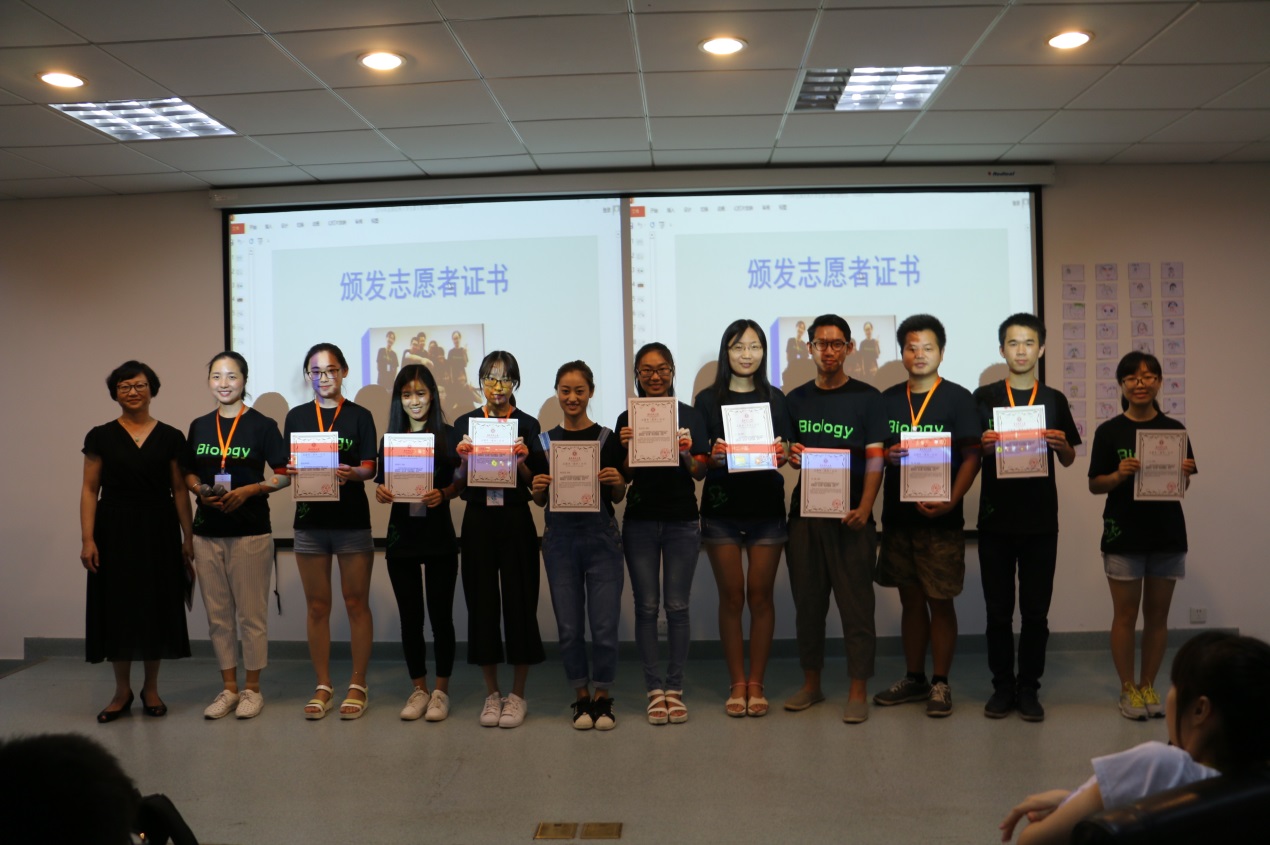 8月24日8:30,夏令营闭营仪式在生科院534报告厅正式开始,副院长钱旻教授、赖玉平教授、易正芳教授、院长助理孙越老师及研究生教务赵娟老师出席。闭营仪式充满感动和感激,营员们真情流露依依不舍,志愿者们分享时更是几度哽咽。营员们表示“这是最用心的夏令营,也是最留人心的夏令营”,“今天的闭营仪式像是新生毕业典礼”,“希望明年九月再聚华师大”;志愿者们表示“作为志愿者参加夏令营活动学习到了很多科研之外的知识”,“研究生生活时刻充满惊喜与挑战”。紧接着,院长助理孙越老师为营员颁发了“最佳人气奖”、“最具潜力奖”、“最佳表现奖”及“最佳团队奖”,钱旻副院长为每一位顺利通过的营员颁发了结业证书与预录取函,并殷切希望营员们能到暗网视频