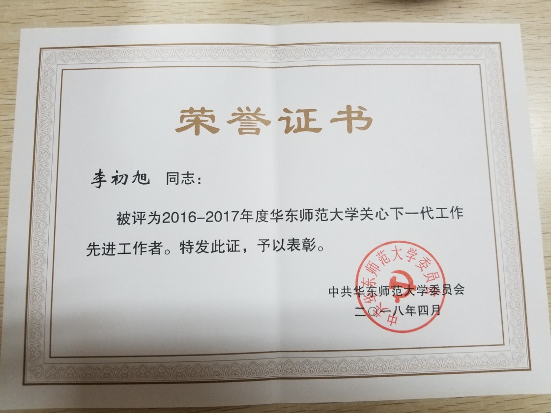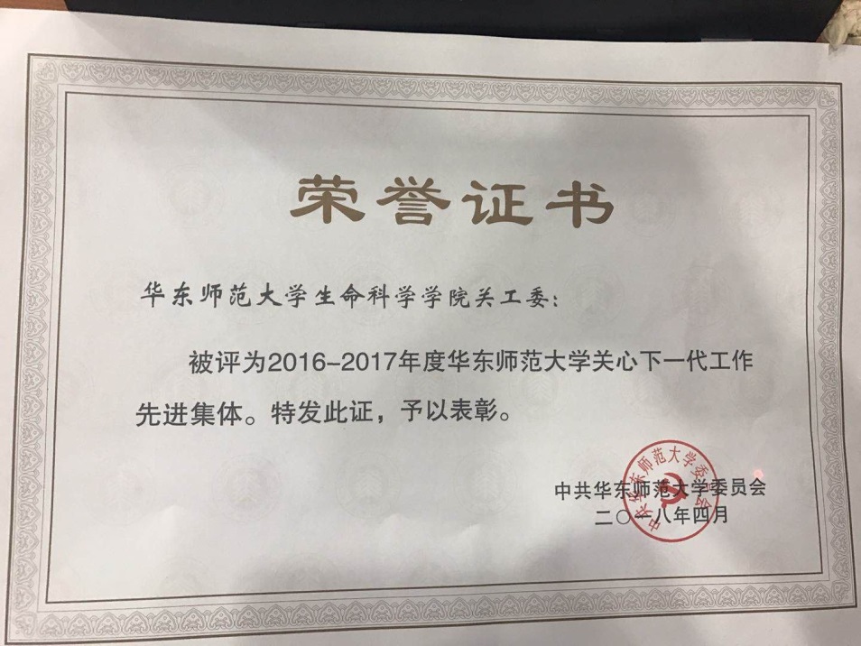 关工委分会荣获“2016-2017年度关心下一代工作先进集体”称号,朱振勤老师被评为第六期“思齐计划”优秀导师,李初旭老师荣获“先进工作者”称号。