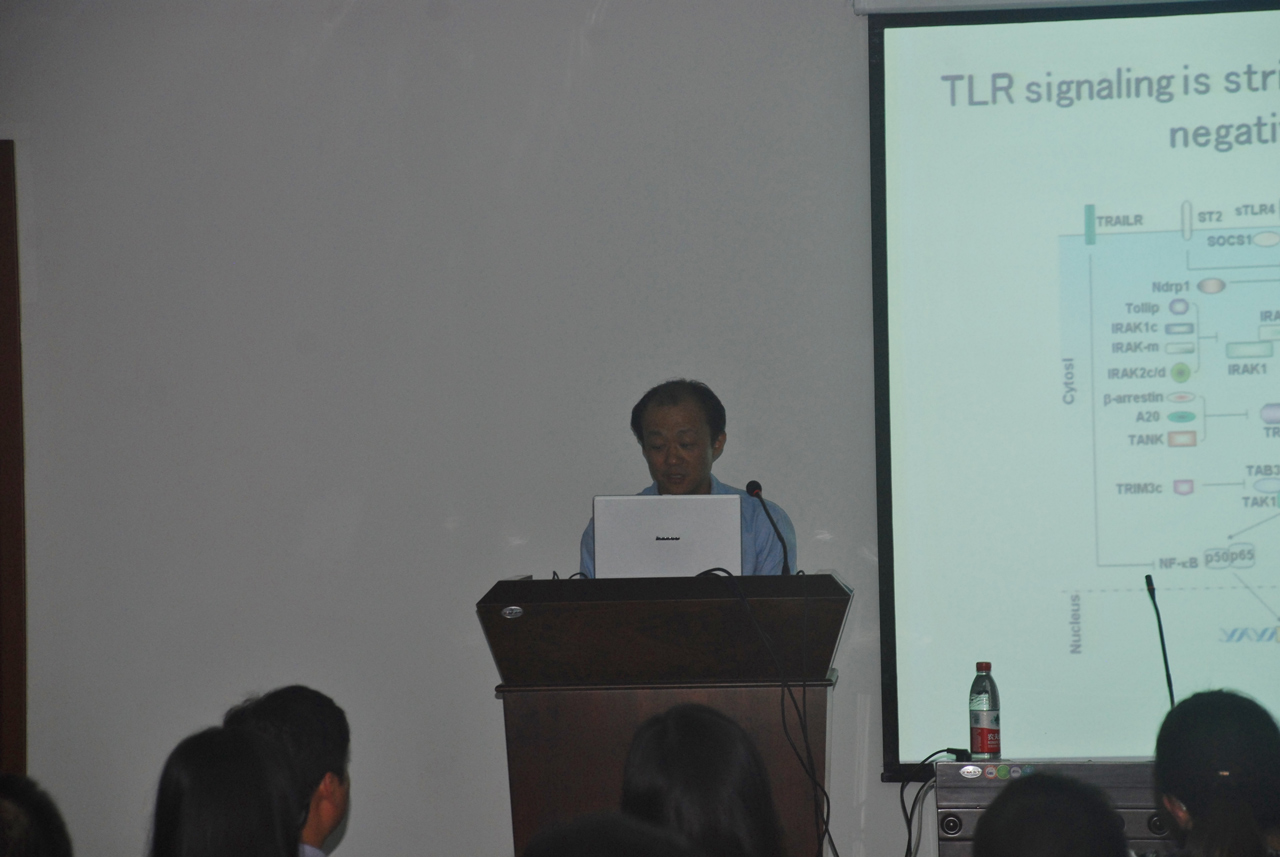 2014年10月29日下午,第二军医大学免疫学教研室、医学免疫学国家重点实验室的安华章教授应邀前来我校进行学术交流,并在生科院534报告厅做了题为“TLR信号转导负向调节机制的研究”的精彩报告。
