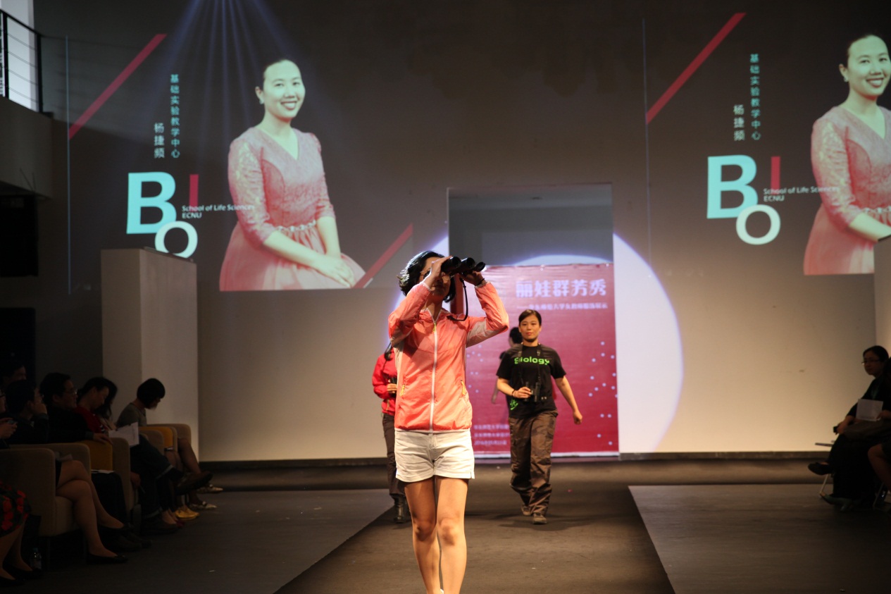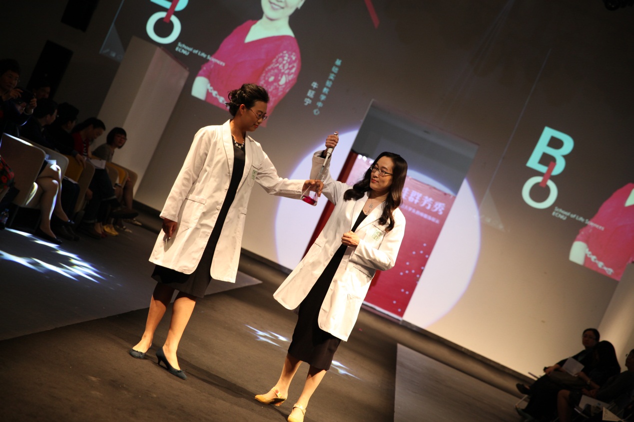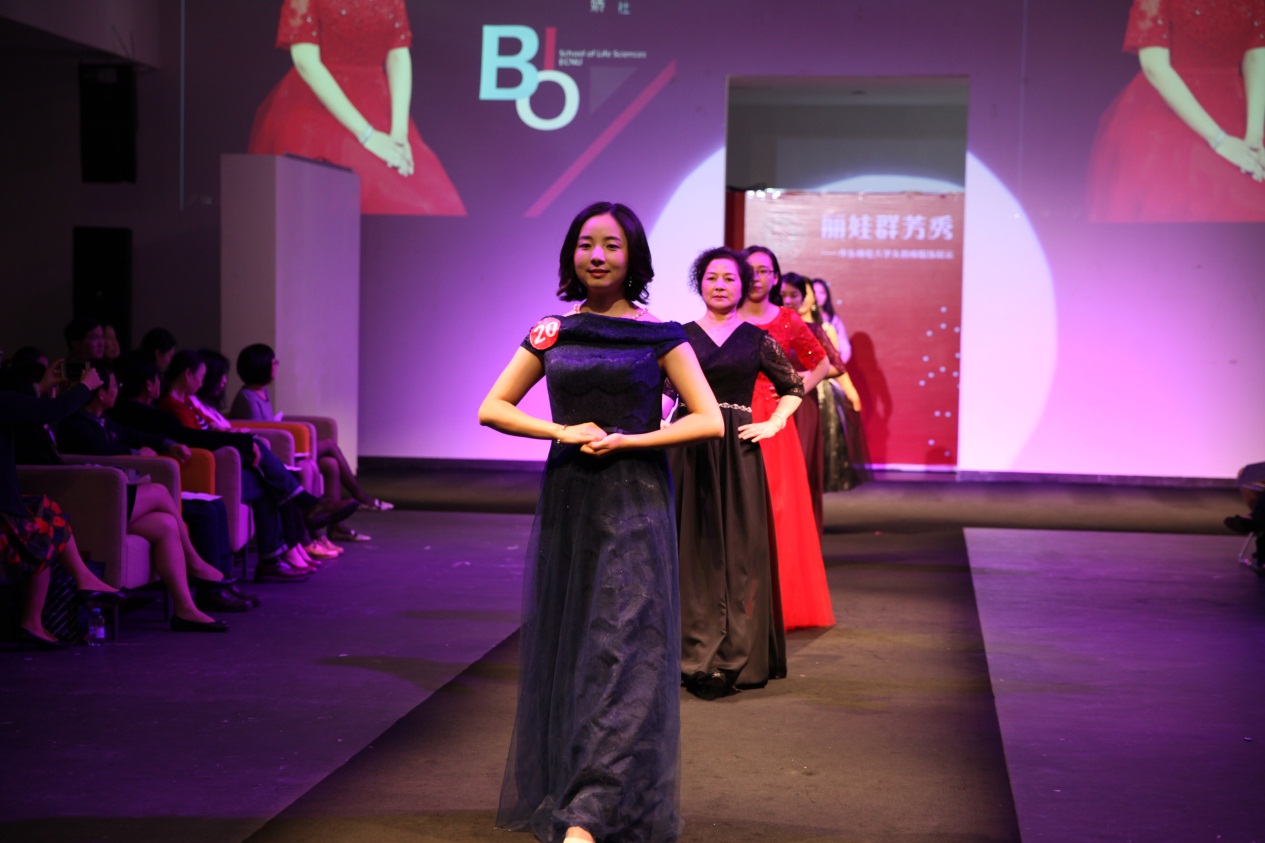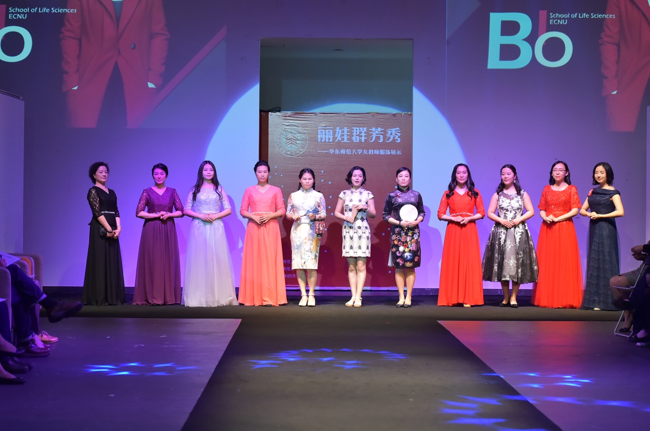 据悉,此次展示活动得到学院党政领导的大力支持,房建军书记带队组成了后勤服务团队,承担为参赛老师们联系化妆师和发型师等工作,保障活动的顺利进行。美丽的妆容、优雅的发型配合华丽的礼服,使得表演更加精彩绝伦。由王琛老师制作的T台背景也与踏着韵律神采奕奕走秀的生科院女教师们产生了动静结合、交相呼应的完美效果,使得她们风采尽显。