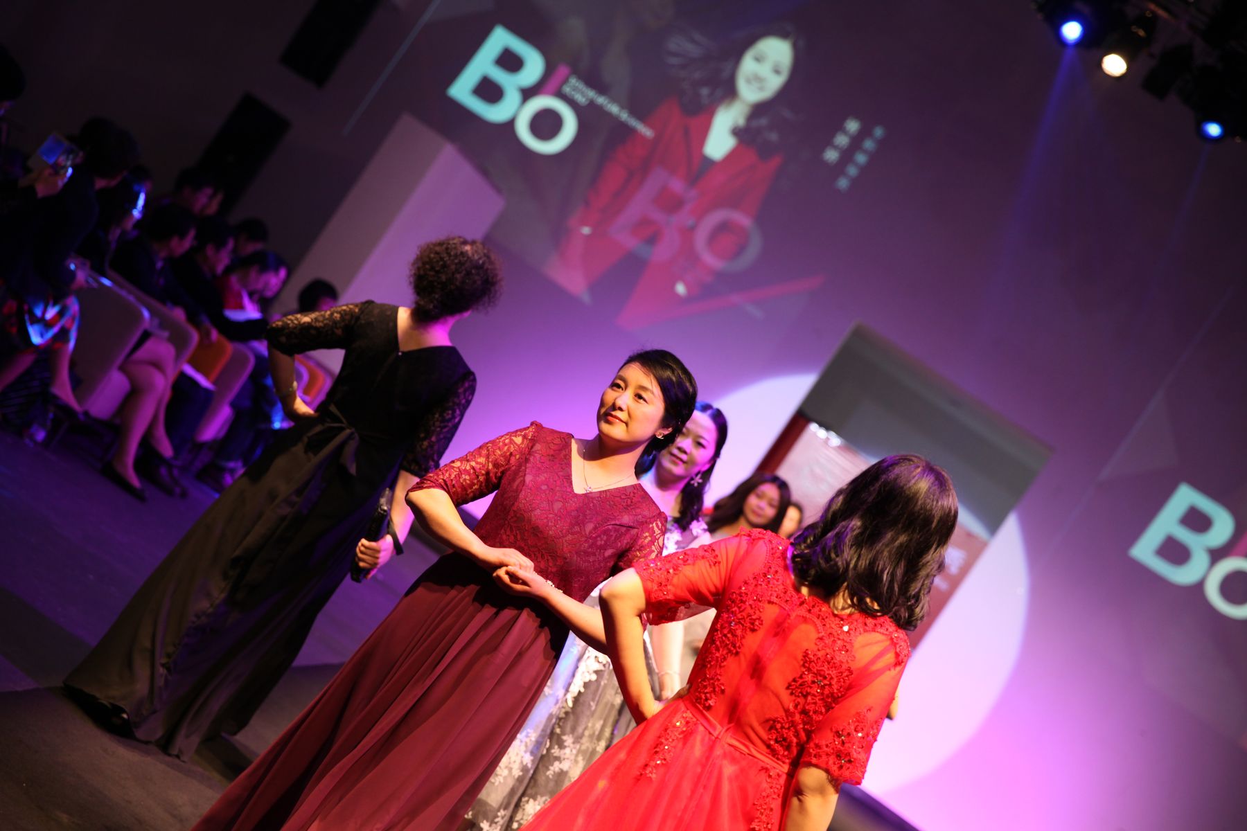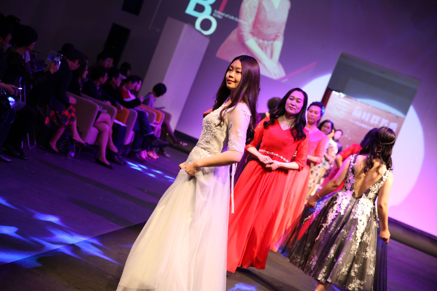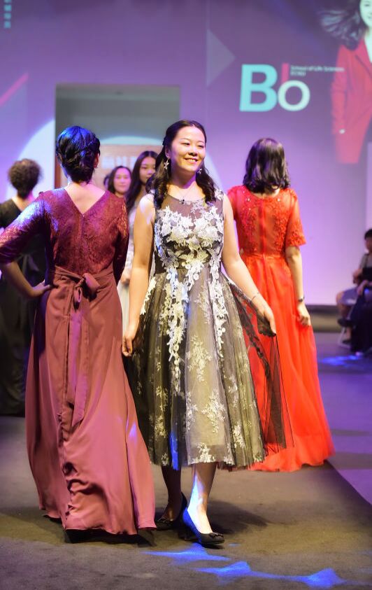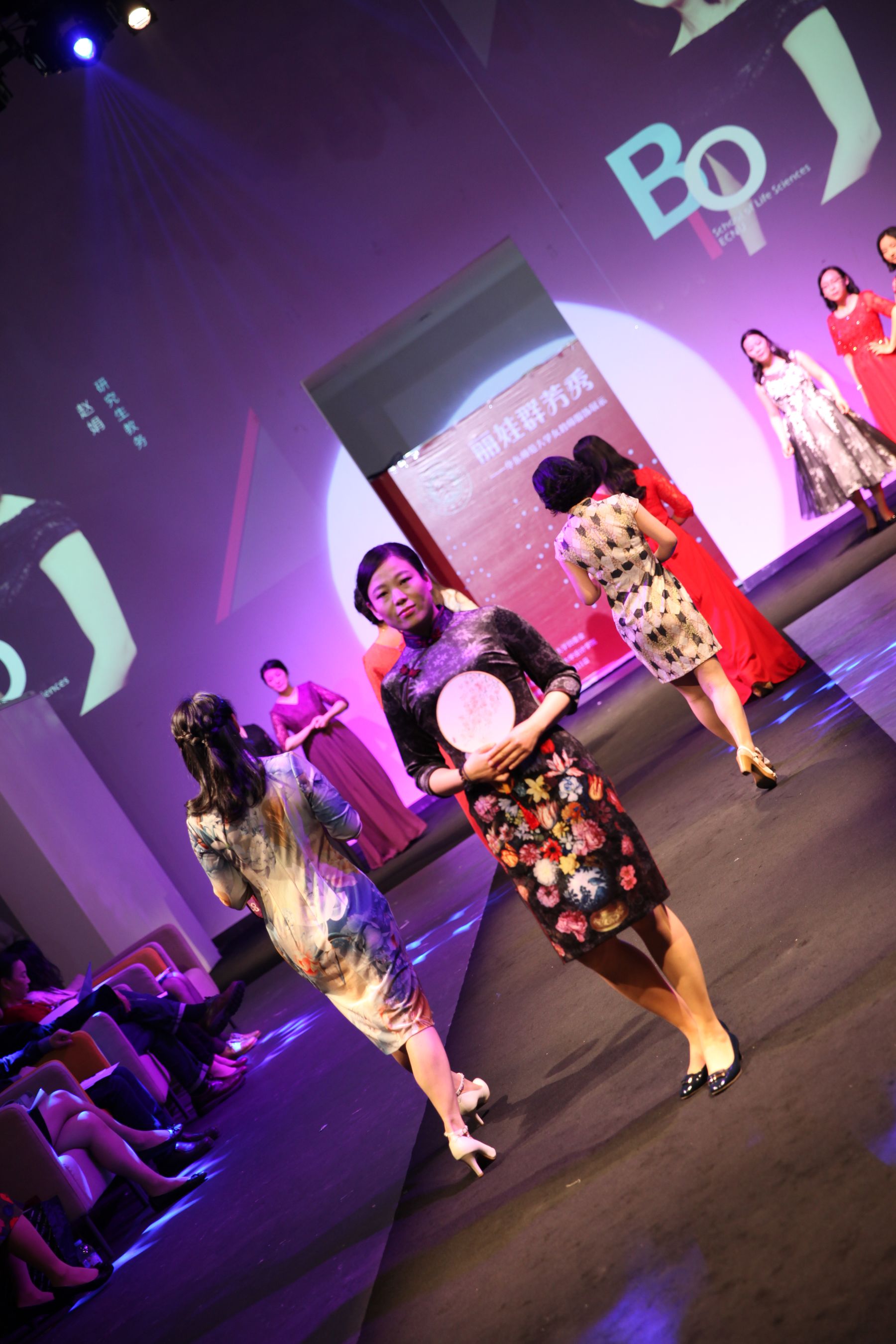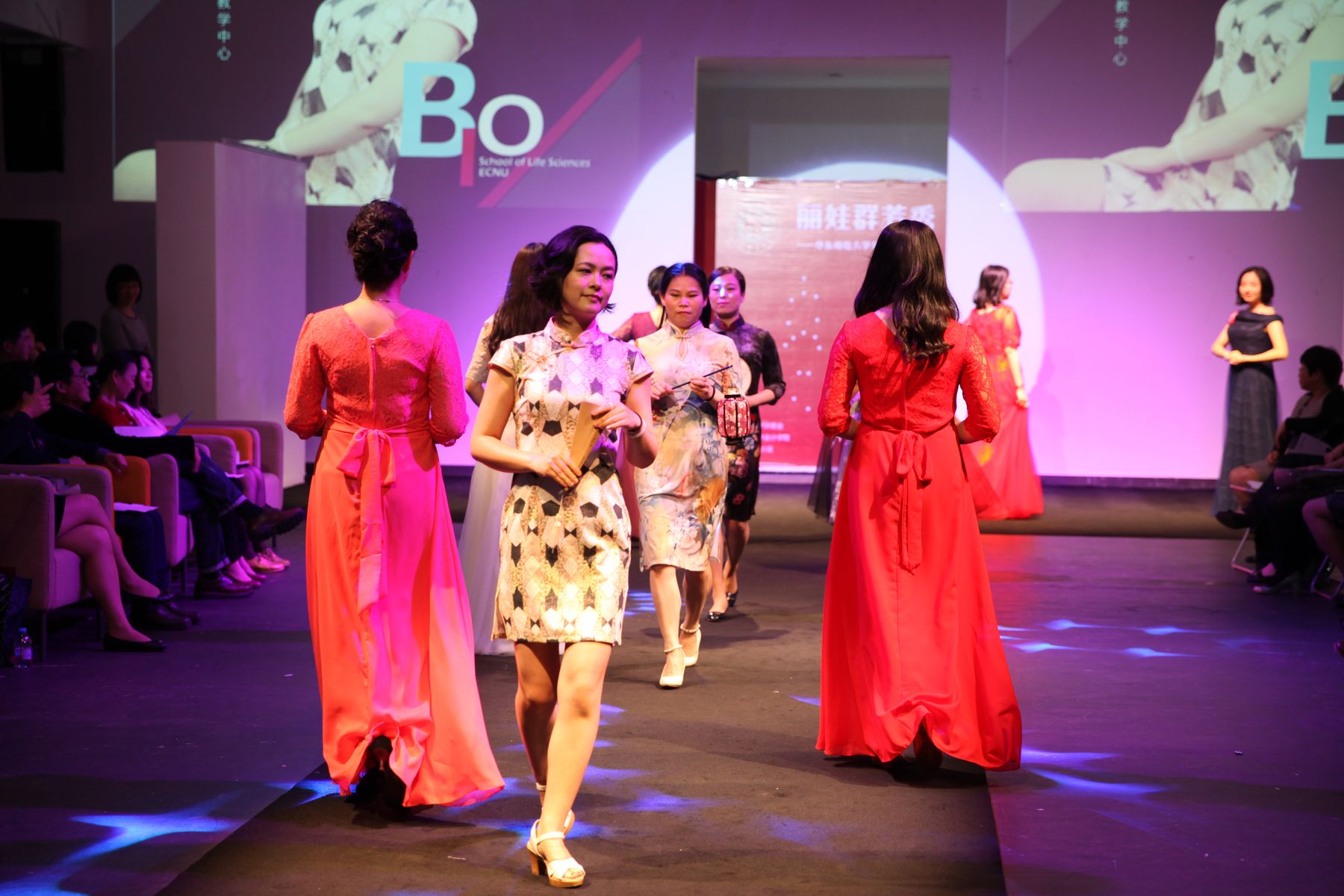 据悉,此次展示活动得到学院党政领导的大力支持,房建军书记带队组成了后勤服务团队,承担为参赛老师们联系化妆师和发型师等工作,保障活动的顺利进行。美丽的妆容、优雅的发型配合华丽的礼服,使得表演更加精彩绝伦。由王琛老师制作的T台背景也与踏着韵律神采奕奕走秀的生科院女教师们产生了动静结合、交相呼应的完美效果,使得她们风采尽显。