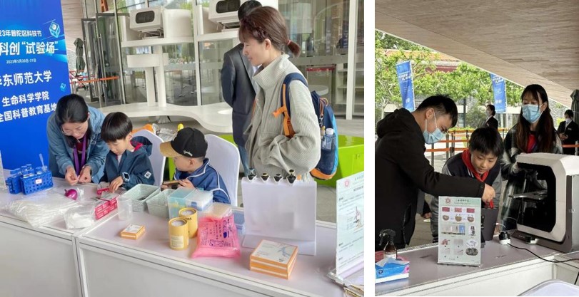 活动中小朋友们对生物科研设备充满了兴趣。看到多通道移液器,他们兴奋地喊道:“这个太酷了,我在电影里看到过,在‘基因实验’中会用到。”通过现场志愿者规范培训后,他们有序体验了移液器等科研器具的使用。