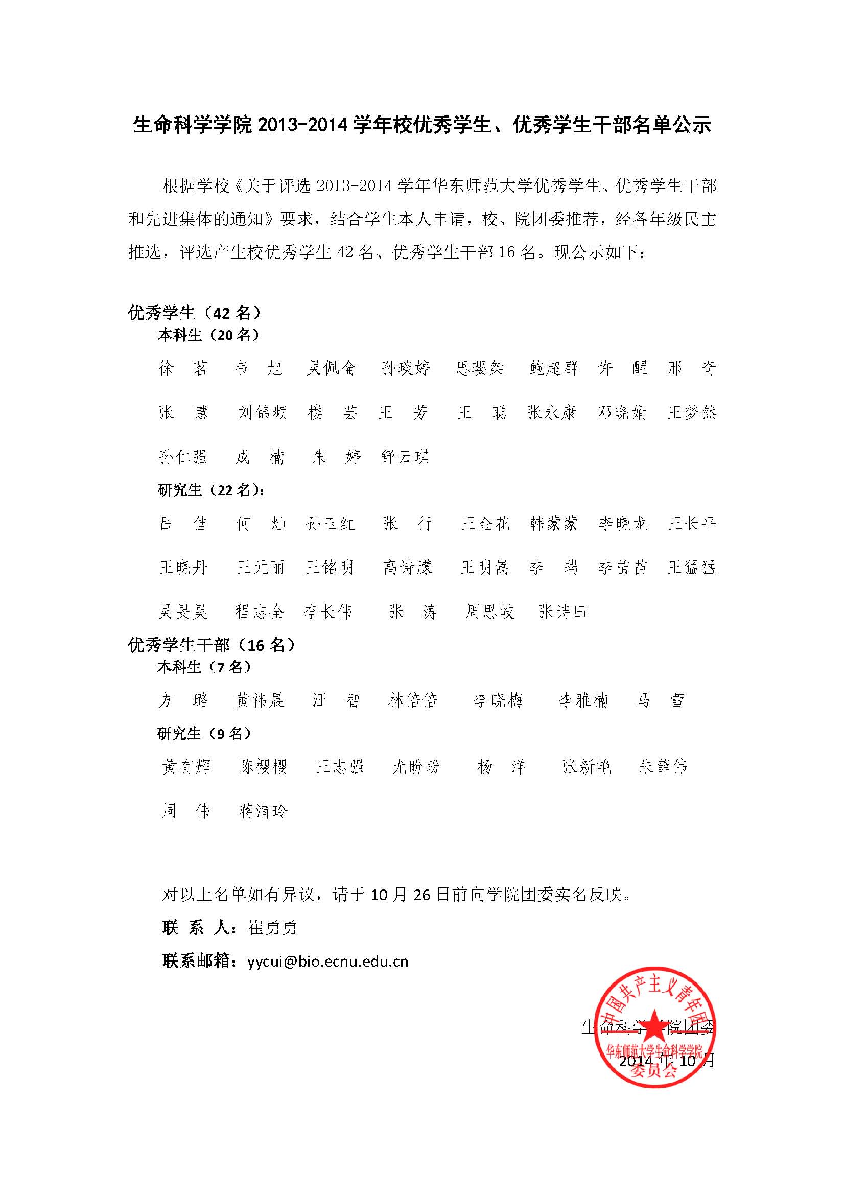 生暗网视频 2013-2014学年校优秀学生、优秀学生干部名单公示