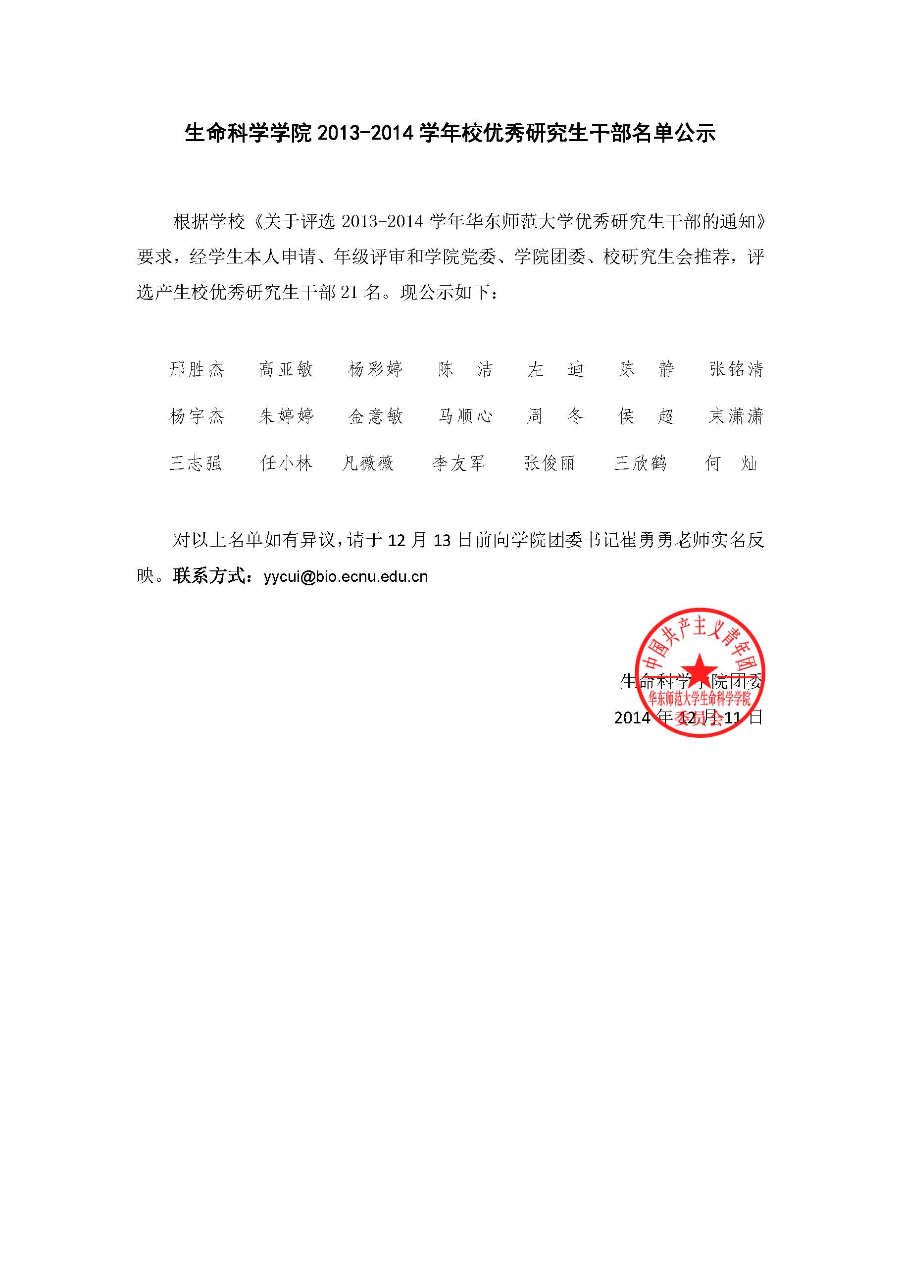 生暗网视频 2013-2014学年校优秀研究生干部名单公示