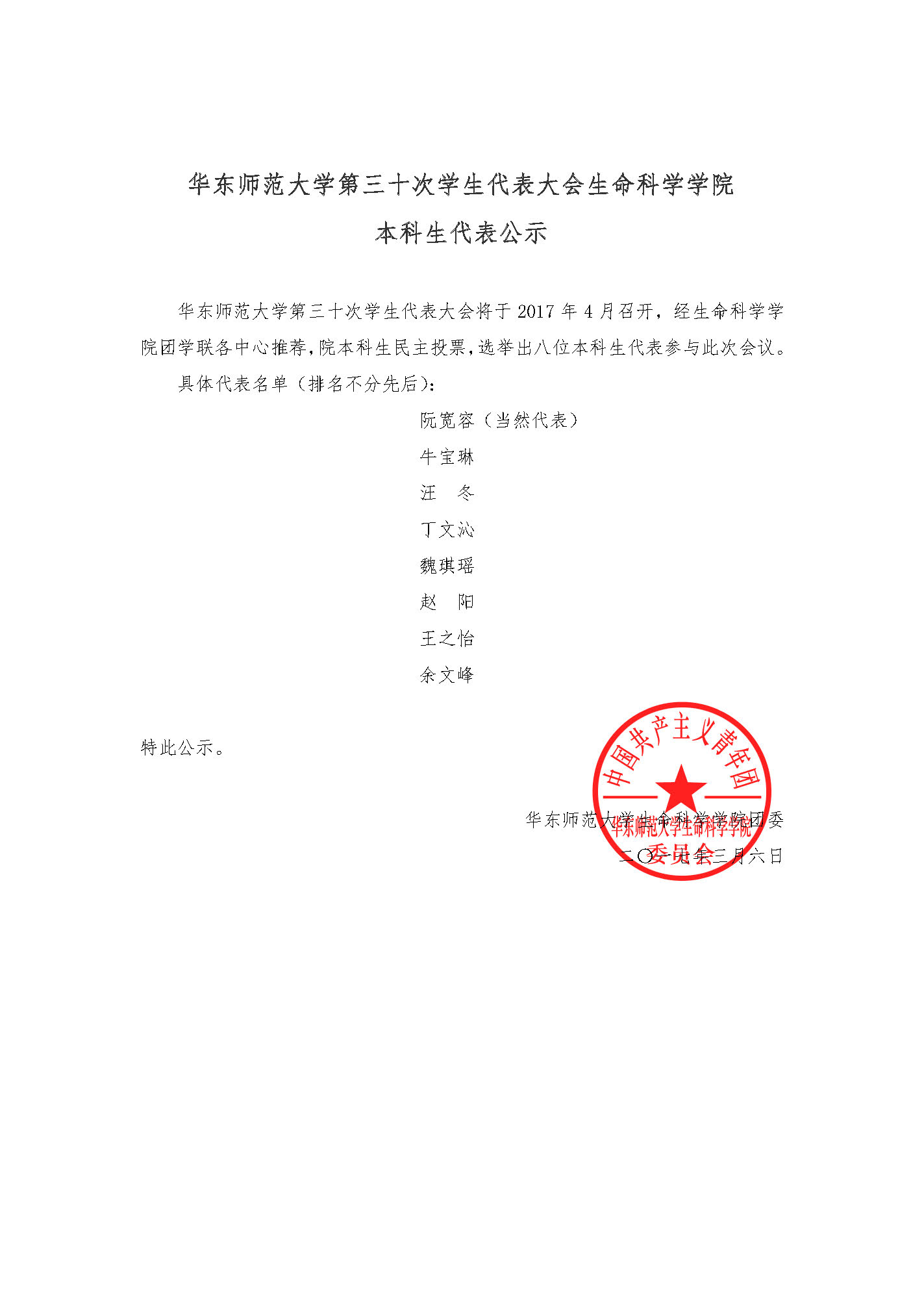 暗网视频 第三十次学生代表大会生暗网视频 本科生代表公示